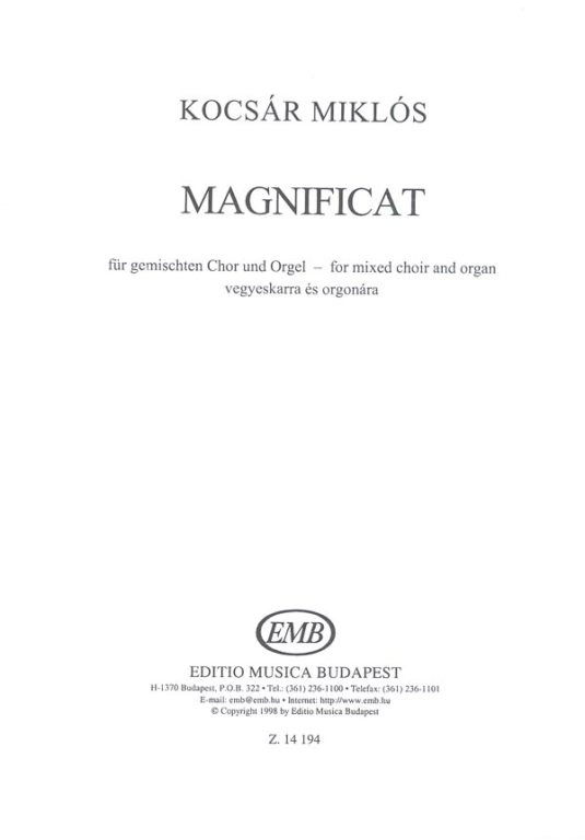 Magnificat vegyeskarra és orgonára