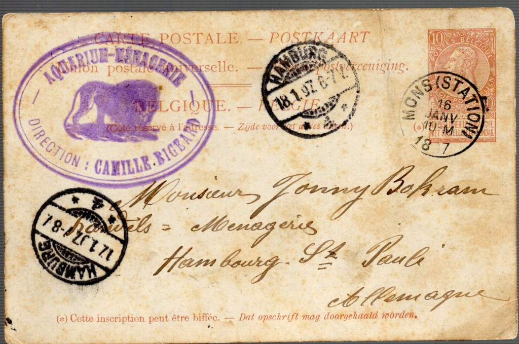 amely egy azonosítható, 19. századi belga/francia menazséria és állatkereskedő vállalkozás jelzése.